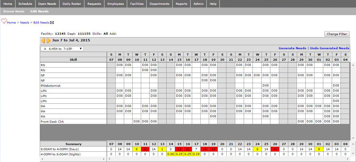 - To view the Need you want to edit, click the Change Filter button to open the Filter Needs screen, enter search criteria, and click Save.