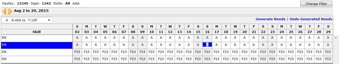 - From the Edit Needs page, select the scheduled cell that you want to delete. A blue highlight fills the selected cell and also