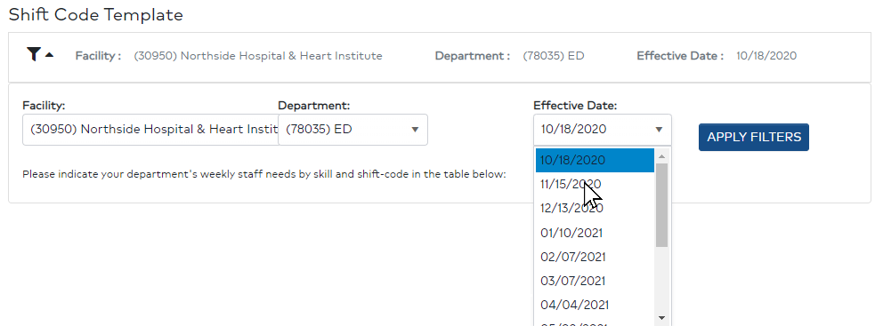 At this time, automated population of shift code templates is NOT available for nursing departments or departments utilizing Operating Room grids. For these departments, the shift code templates are editable and can be completed manually.