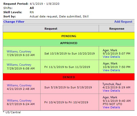 - You can view your Pending, Approved, and Denied Request on your Employee Requests page.