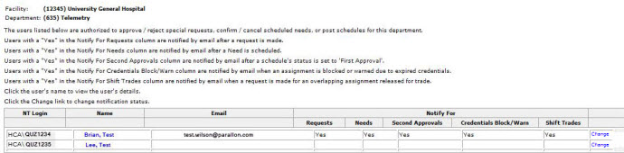 The Facility Scheduler application sends e-mail notifications to designated users:
