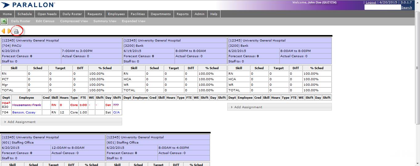 Access: Users assigned the Charge role and higher may view and print the daily roster.