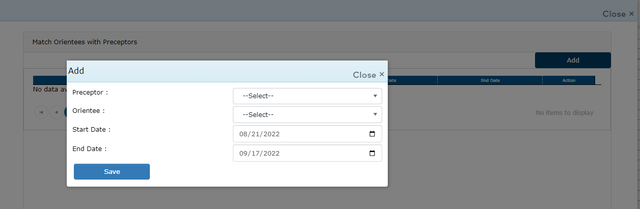 Click to Match Preceptors with Orientees